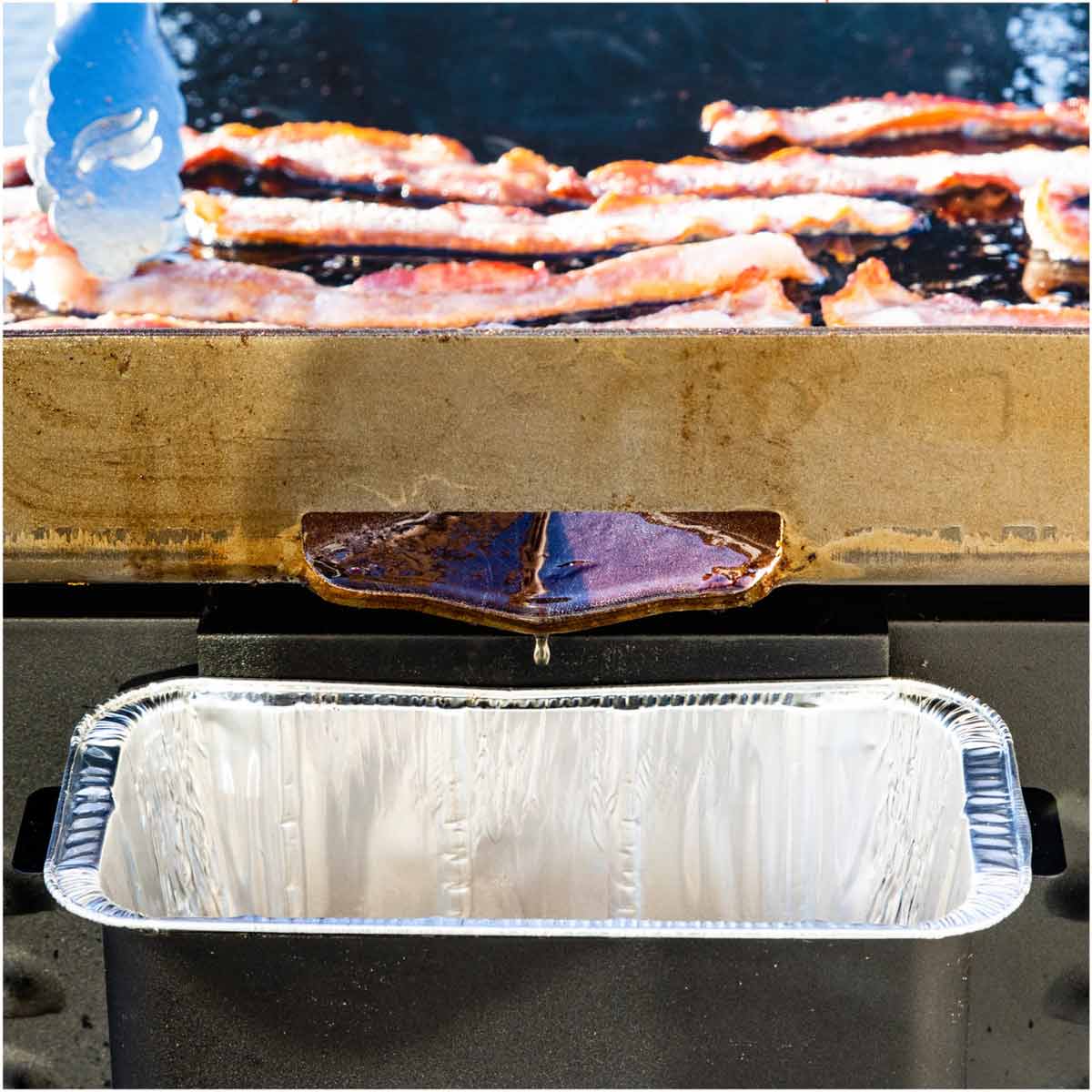 Die Auffangschalen bestehen aus robuster Aluminiumfolie und fassen ca. 800 ml. Sie passen exakt in alle Blackstone Rear Grease Griddles, jedoch nicht in Modelle der E-Serie oder Camping-Griddles.