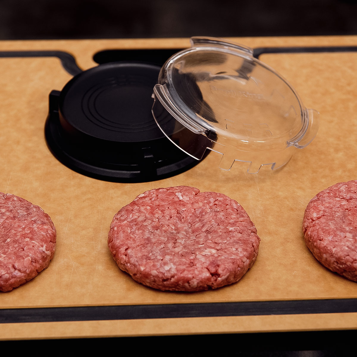 Mit dieser erstklassigen Burgerpresse könnt Ihr spielend leicht perfekte Burgerpatties von bis zu 170 g formen. Die eingebauten Markierungen ermöglichen eine präzise Portionierung, sodass Ihr stets gleichmäßige Patties für ein ultimatives Geschmackserlebnis erhaltet.