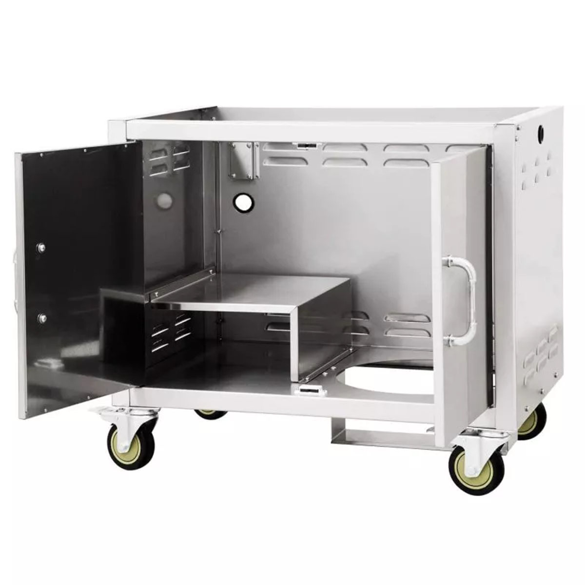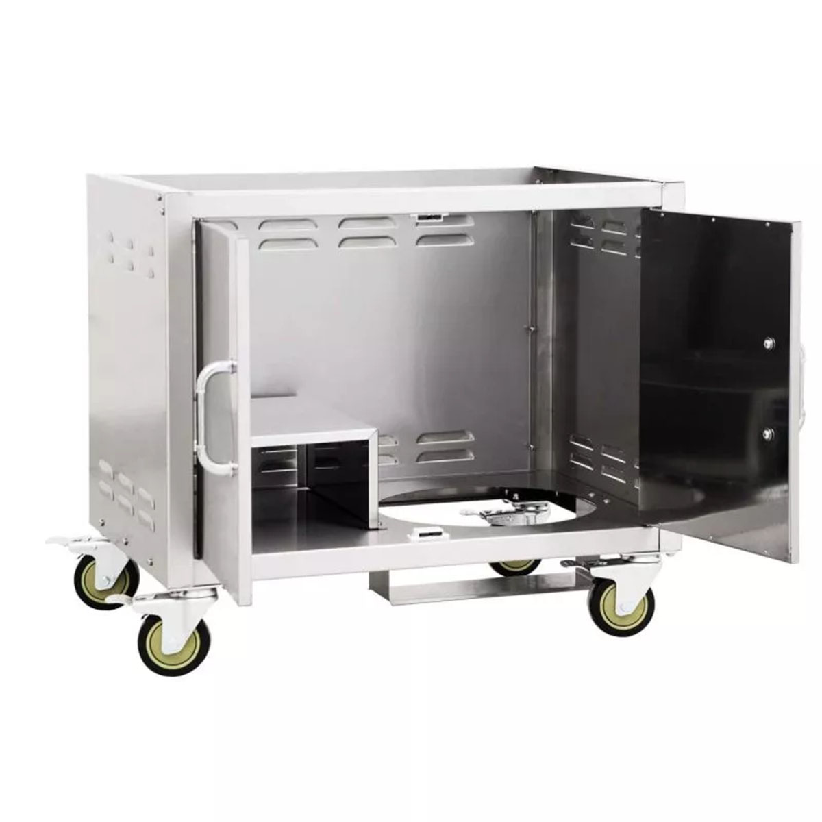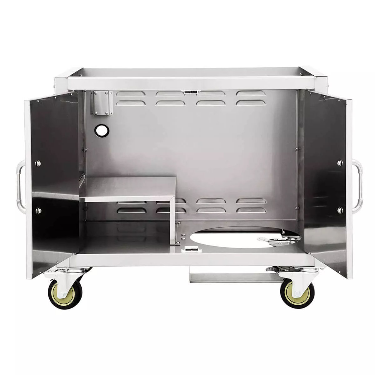 Mit dem Bull Unterwagen für Bull Built Ins schafft Ihr nicht nur einen stabilen und langlebigen Stand für Euren Grill, sondern erweitert ihn gleichzeitig um praktischen Stauraum und Arbeitsflächen. Komplett aus hochwertigem V2A Edelstahl (304) gefertigt, ist dieser Unterschrank nicht nur besonders robust, sondern auch wetterfest und pflegeleicht. Dank vier Schwerlastrollen bleibt der Grill trotz seines Gewichts immer mobil – perfekt für flexible Outdoor-Küchen!