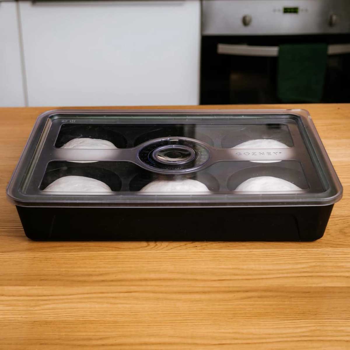 Mit der Pizzaballenbox von Gozney bringt Ihr Euren selbstgemachten Pizzateig mühelos auf Profi-Niveau. Bis zu 6 einzelne Pizza-Portionen erhalten in der verschließbaren Box die ideale Umgebung zum Aufgehen und Ruhen – für besten Geschmack und perfekte Textur.
