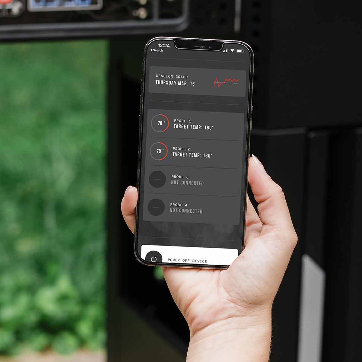 Ein digital gesteuerter Lüfter sorgt anschließend für eine konstante Temperatur, sodass du dich voll auf das Grillen konzentrieren kannst. Die Steuerung erfolgt bequem über das Bedienfeld oder per Smartphone-App, inklusive Temperaturüberwachung und Timer-Funktion.