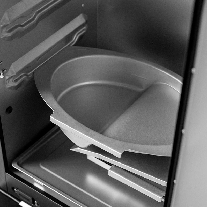 - Einfache Reinigung: Die abnehmbare Wasserschale und die hintere Fettauffangschale sorgen für eine unkomplizierte Reinigung nach dem Räuchern.