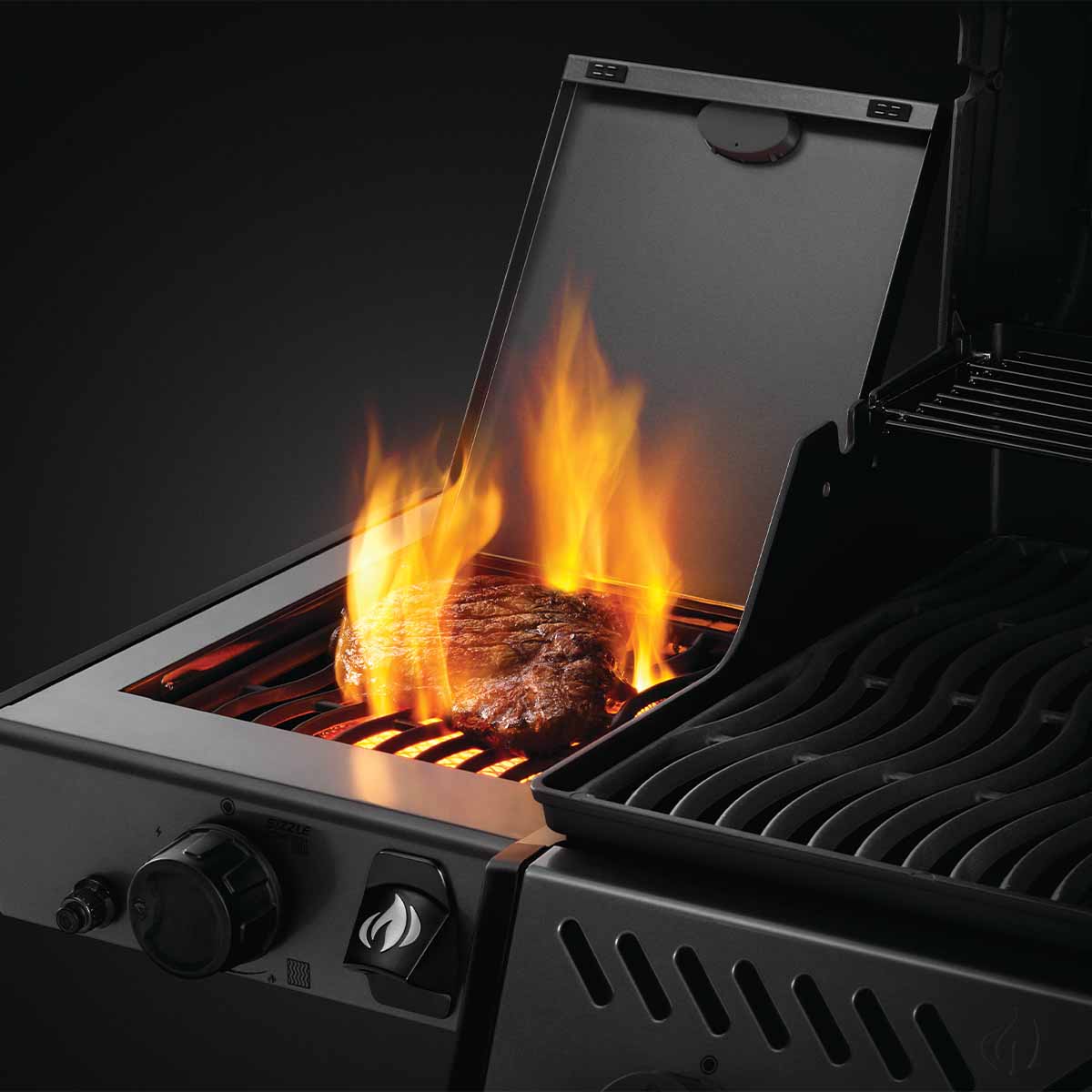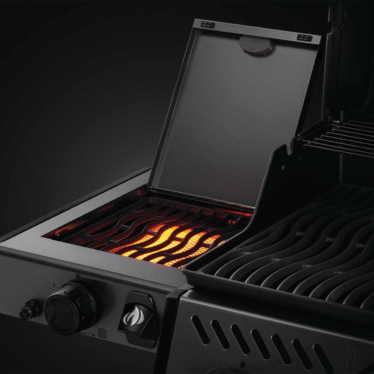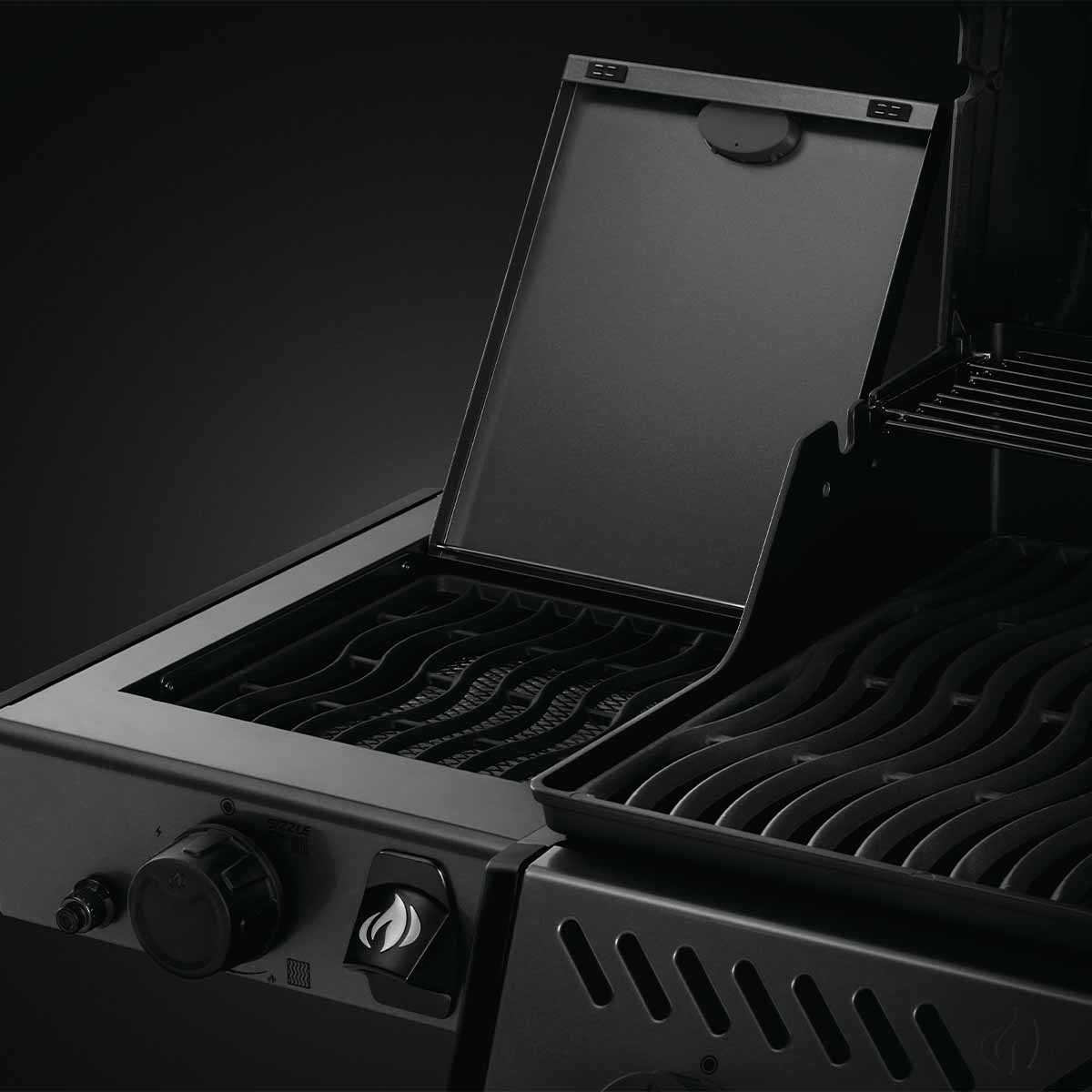 In der linken Seitenablage befindet sich zusätzlich ein SIZZLE ZONE Infrarotbrenner. Diese Hochtemperaturzone verwöhnt Euer Grillgut bei bis zu 800 Grad Celsius mit köstlichen Röstaromen und ist natürlich auch perfekt für Wok- oder Pfannengerichte geeignet.