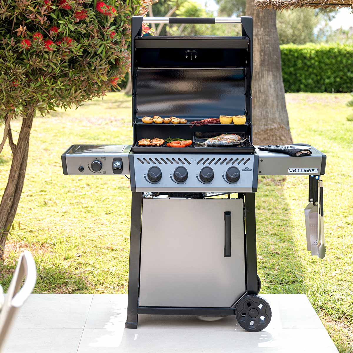 Die kompakte Grillstation mit 4 Brennern & Hochleistungs-Seitenbrenner