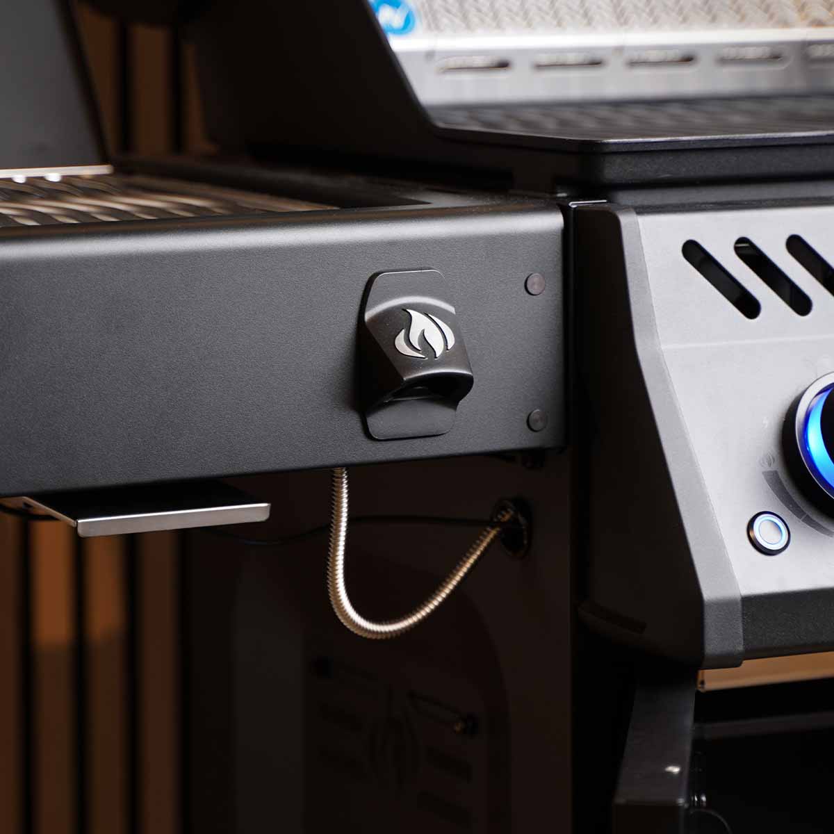 Dank JETFIRE™ Zündsystem starten die Brenner schnell und zuverlässig per Knopfdruck. Die beleuchteten SafetyGlow™ Drehregler sorgen auch bei Dunkelheit für optimale Übersicht, während das integrierte ACCU-PROBE™ Thermometer jederzeit eine präzise Temperaturkontrolle ermöglicht.