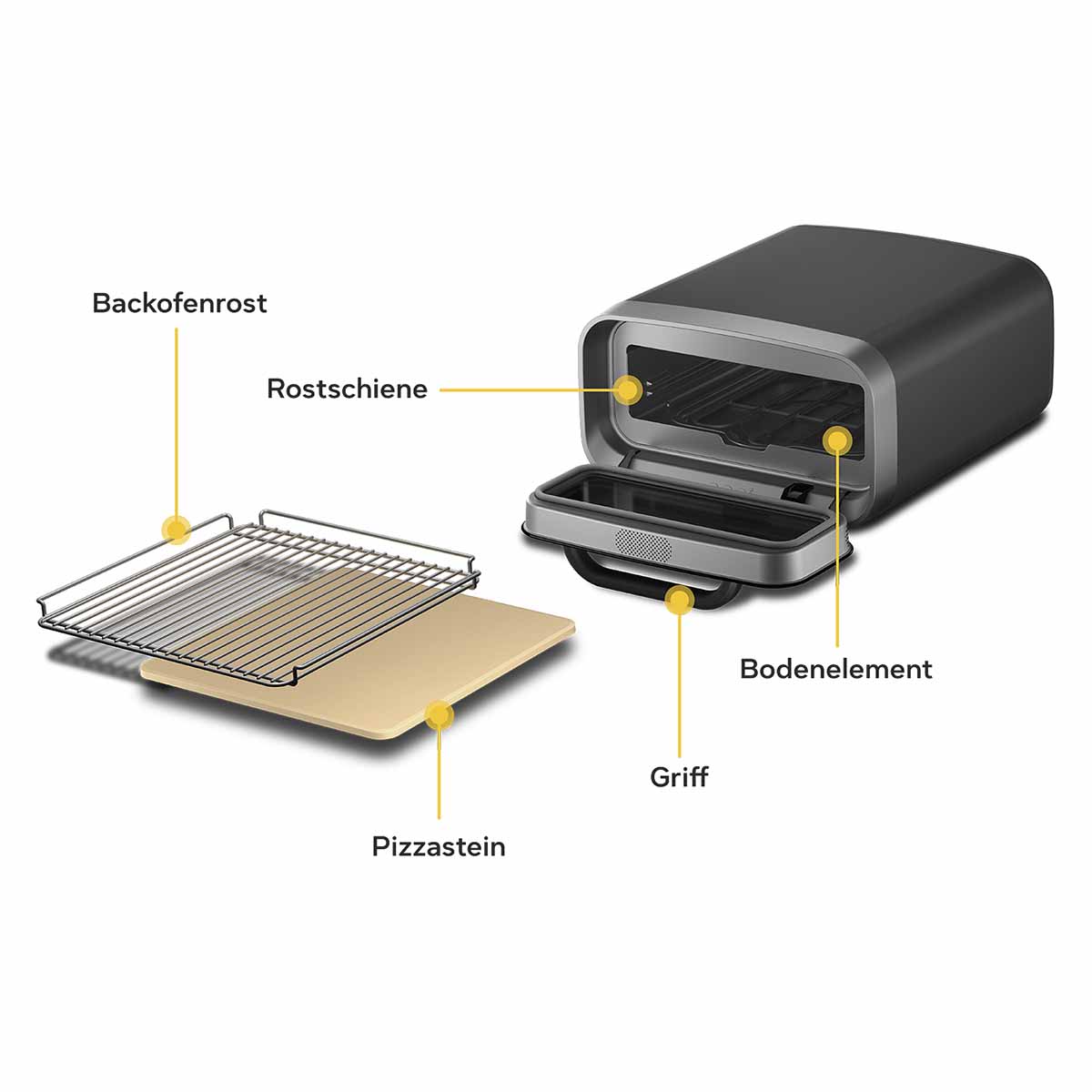 - Temperatur bis 450 °C für authentische Steinofen-Pizza