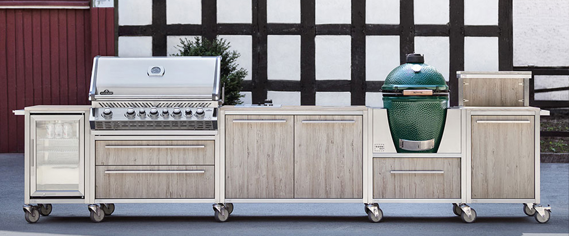 Die Küchen sind so konzipiert, dass sie mit den Grills führender Hersteller kompatibel sind. Dazu zählen unter anderem die Einbau-Gasgrills von Napoleon, BeefEater und Broil King, sowie verschiedene Keramikgrill-Modelle.