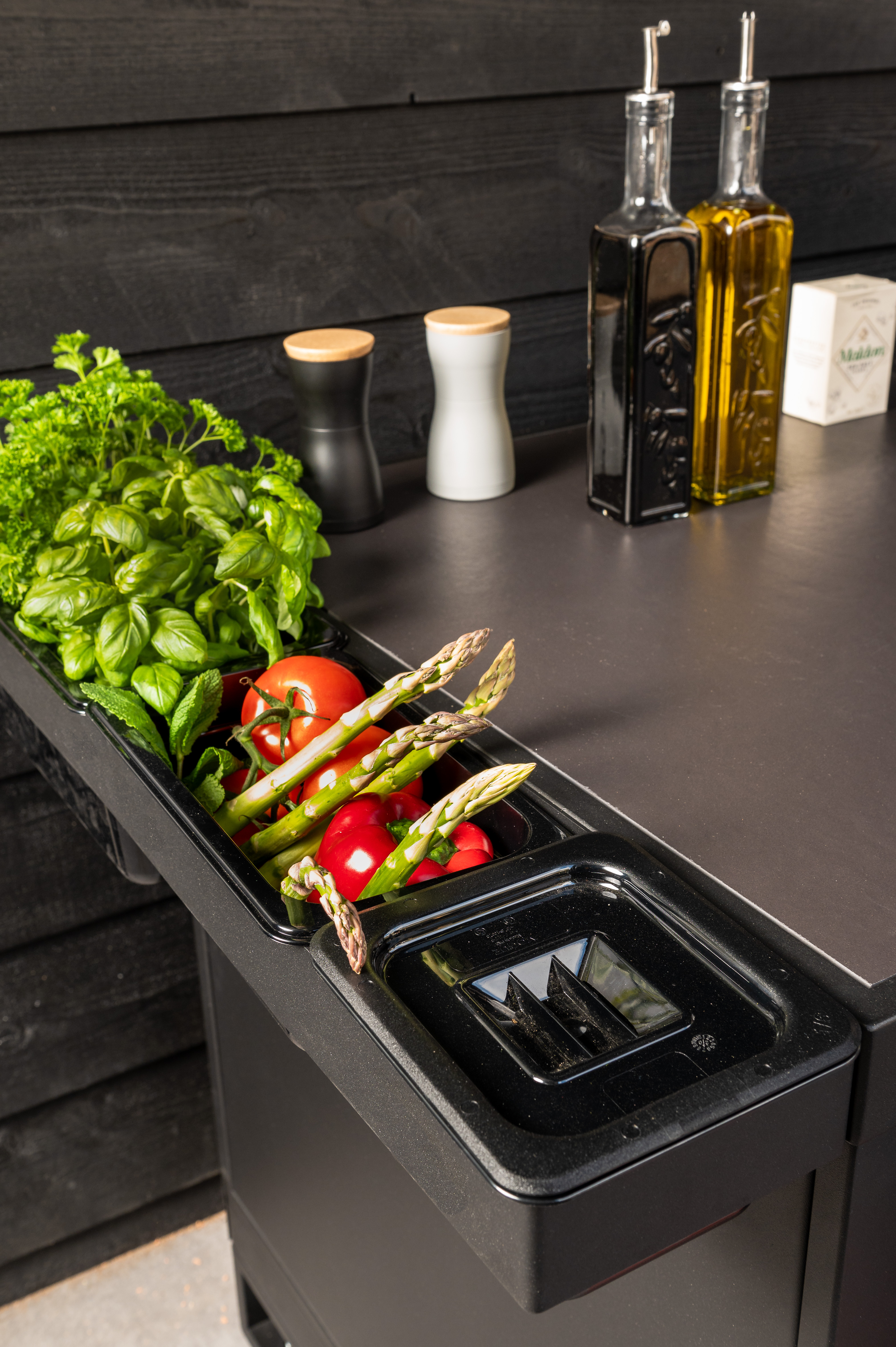 Das Modul Rubix Duo ist die ideale Basis, um darauf aufbauend eine individuelle Outdoorküche ganz nach Euren Vorstellungen zu gestalten – ob als Arbeitsplatte, Unterschrank oder mit Grilleinsatz.