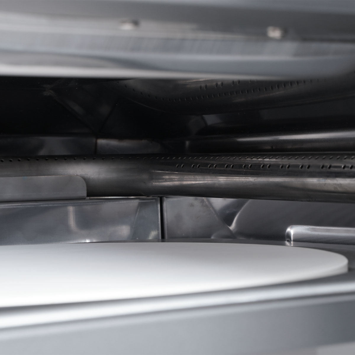 Der U-Brenner von SANTOS gibt die Hitze an die Pizza konstant weiter und schafft einen gleichmäßig beheizten Brennraum.