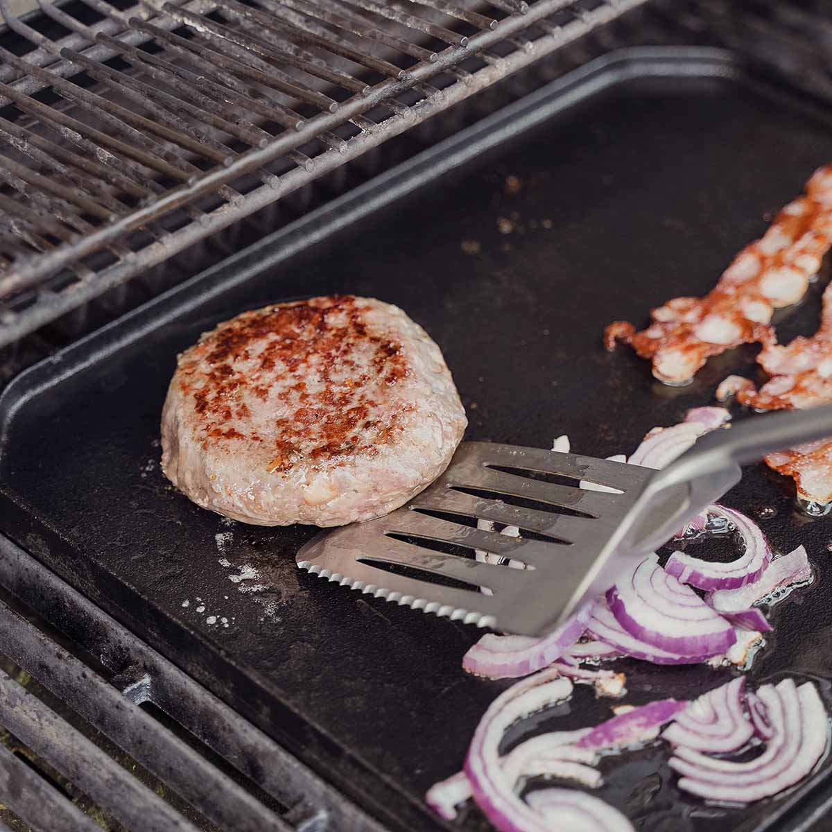Wenn es um das Grillen von Burger & Co geht, darf ein Grillwender nicht fehlen. Dank der breiten Schaufel gelingt jedes Wendemanöver, so dass Burgerpattys, Fisch, Grillkäse und Gemüsescheiben auch beim Drehen, Wenden und Servieren eine perfekte Figur machen.