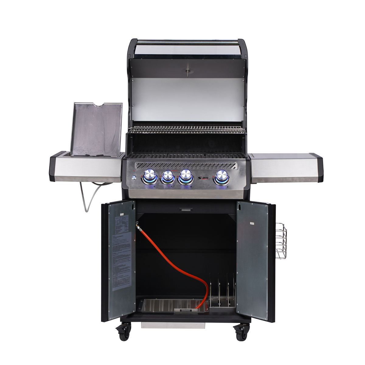 Harmonisch abgerundet wird der S-301 Pro durch sein elegantes Design in geradliniger Optik. Die Außenflächen aus coolem Edelstahl und schwarzer Emaille kombiniert mit den vertikalen Griffmulden der Türen verleihen dem Grill einen ausgesprochen edlen und modernen Look.
