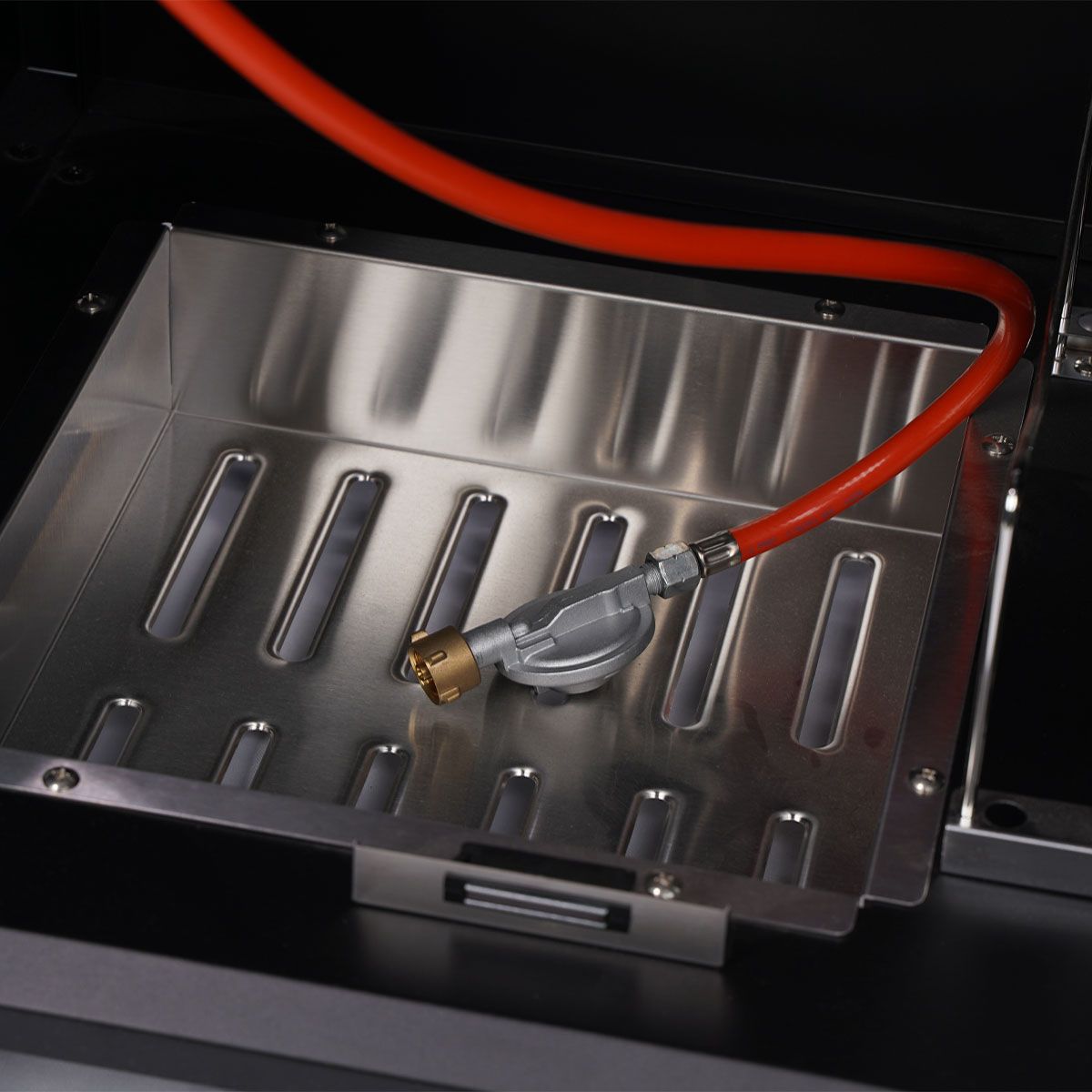 Die robuste Grillkammer, das Bedienfeld und die Seitenablagen sind aus Edelstahl gefertigt, zusätzlich glänzt der Unterwagen mit einem Material-Upgrade: Alle Boden- und Seitenteile sowie die Türaußenflächen bestehen ebenfalls komplett aus Edelstahl. Selbst bei Kratzern in der Beschichtung bleibt Ihr somit von unerwünschten Roststellen verschont. Zusätzlich ist die schwarze Pulverbeschichtung äußerst langlebig und widerstandsfähig – so erhält Euer S-401 Pro den ultimativen Schutz vor Kratzern, Korrosion, Abrieb und Ausbleichen.